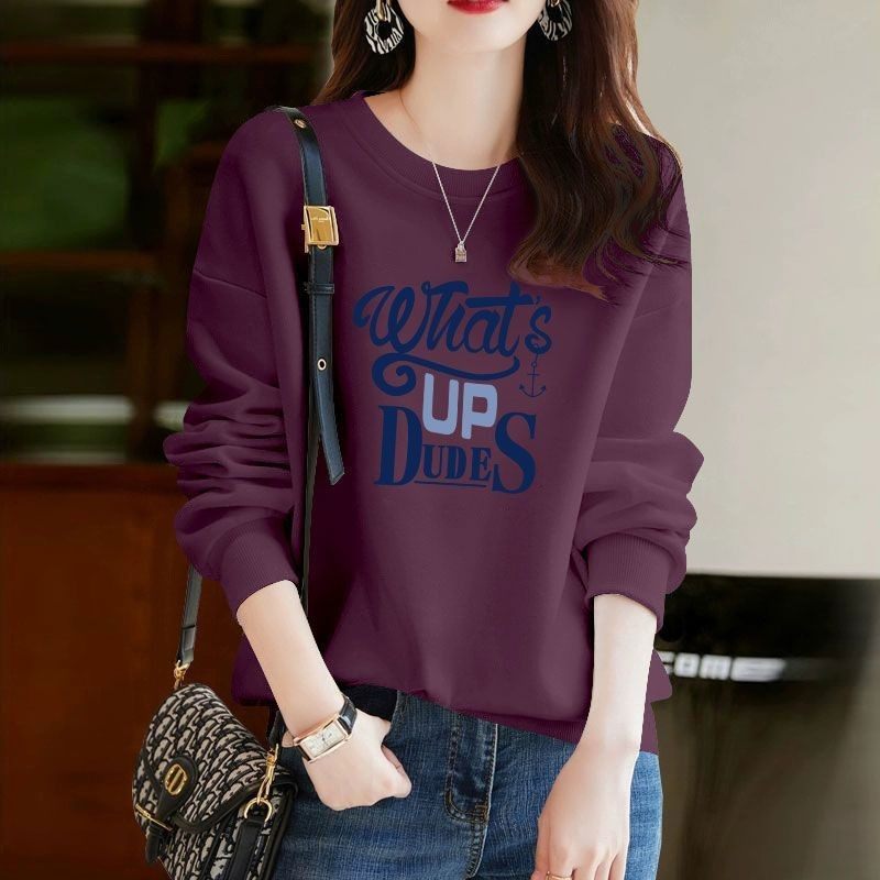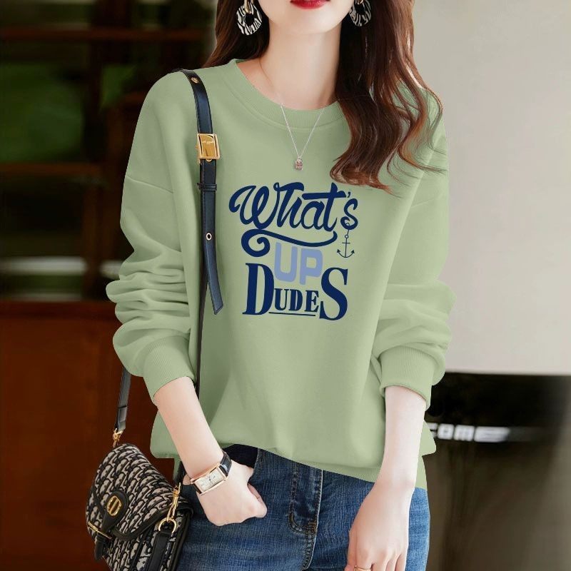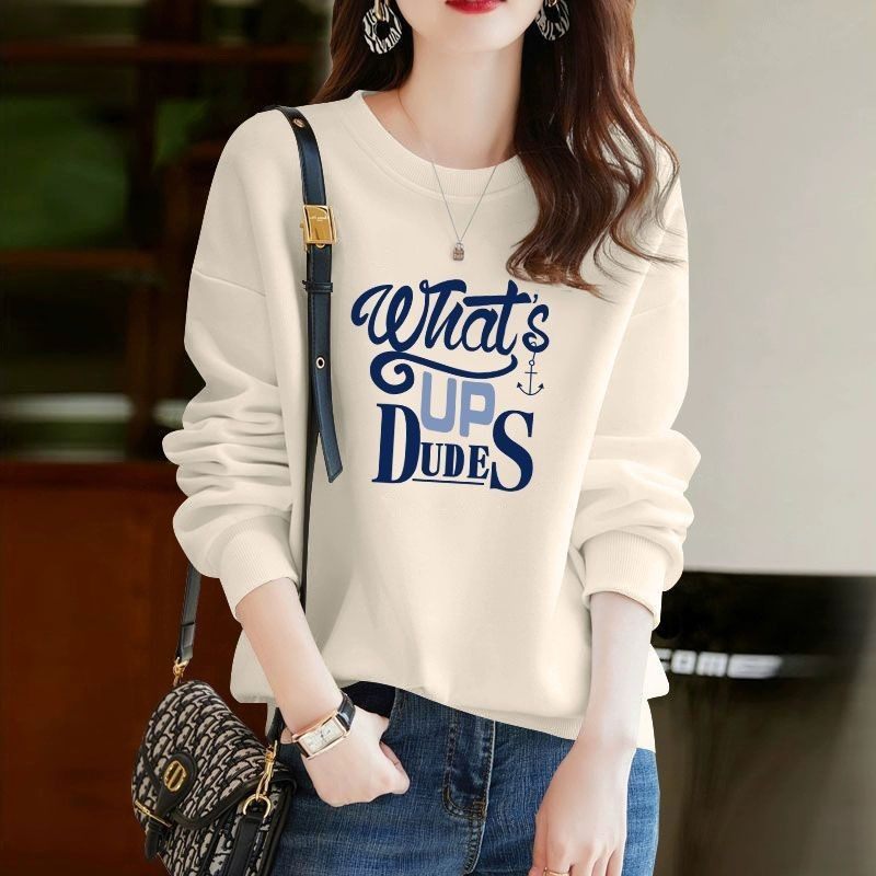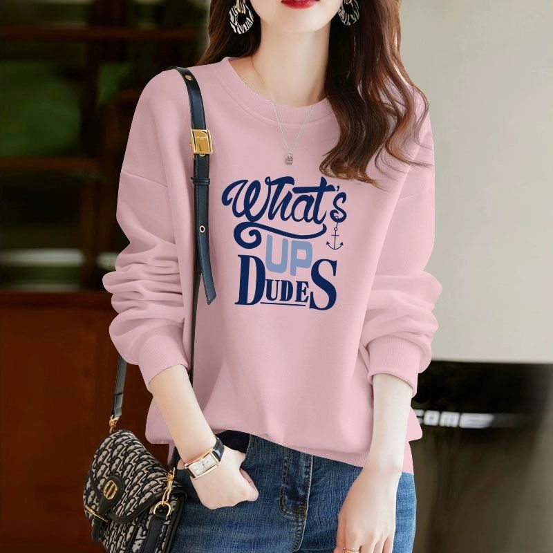 春秋女士纯棉长袖圆领卫衣韩版通勤潮流百搭宽松显瘦慵懒风上衣服
