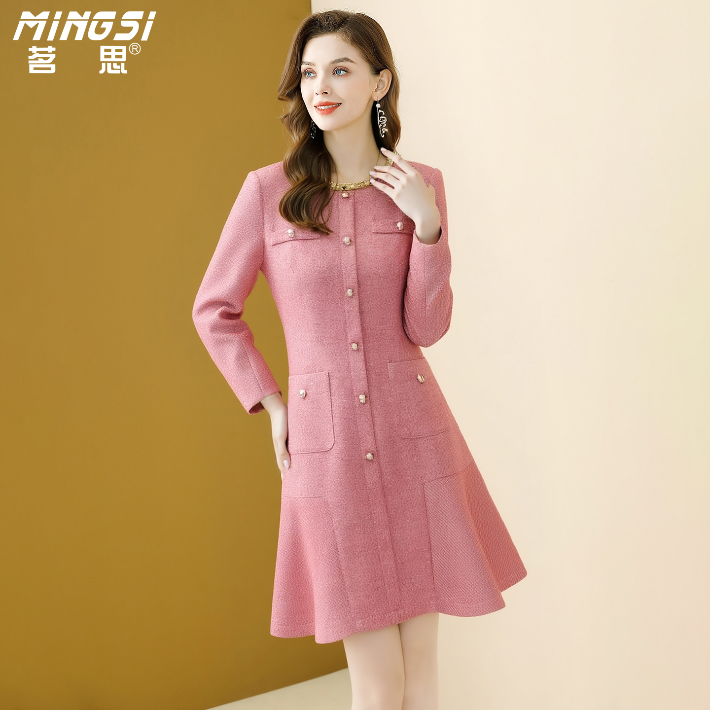 茗思名媛小香风连衣裙女2025秋装新款粗花呢镶钻显瘦小个子鱼尾裙