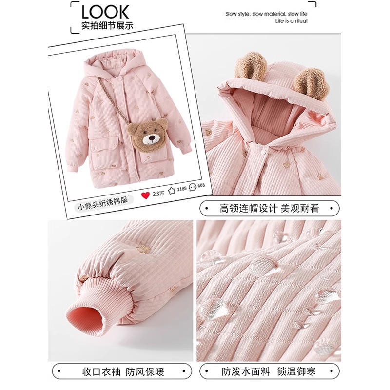 女童中长款棉服2025冬季新款儿童洋气棉衣中大童秋冬加厚羽绒