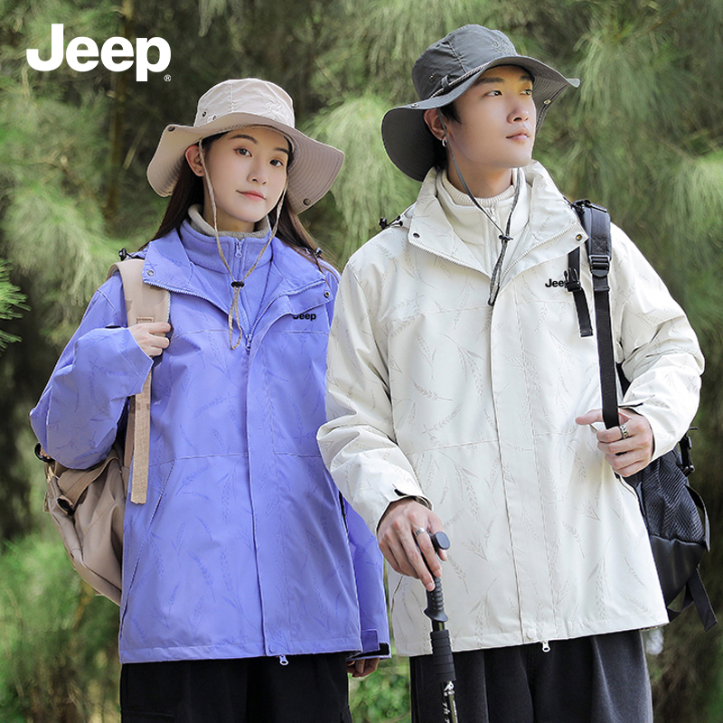 Jeep吉普冲锋夹克男2025秋冬季新款三合一防风防水加绒加厚外套女
