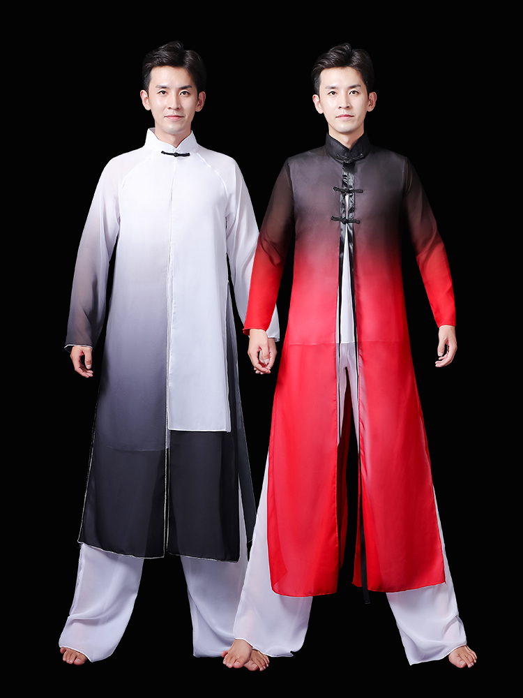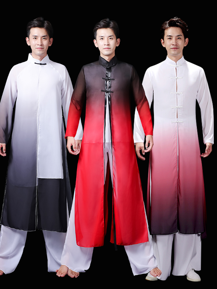 古典舞蹈演出服装男中国风书简舞现代水墨古风纱衣文艺表演服套装