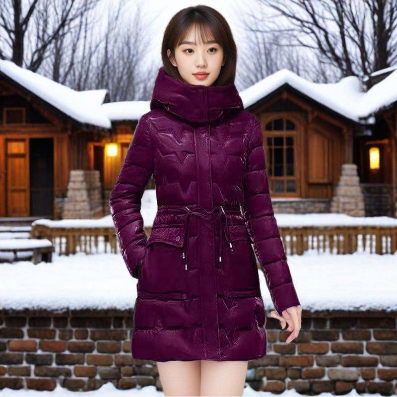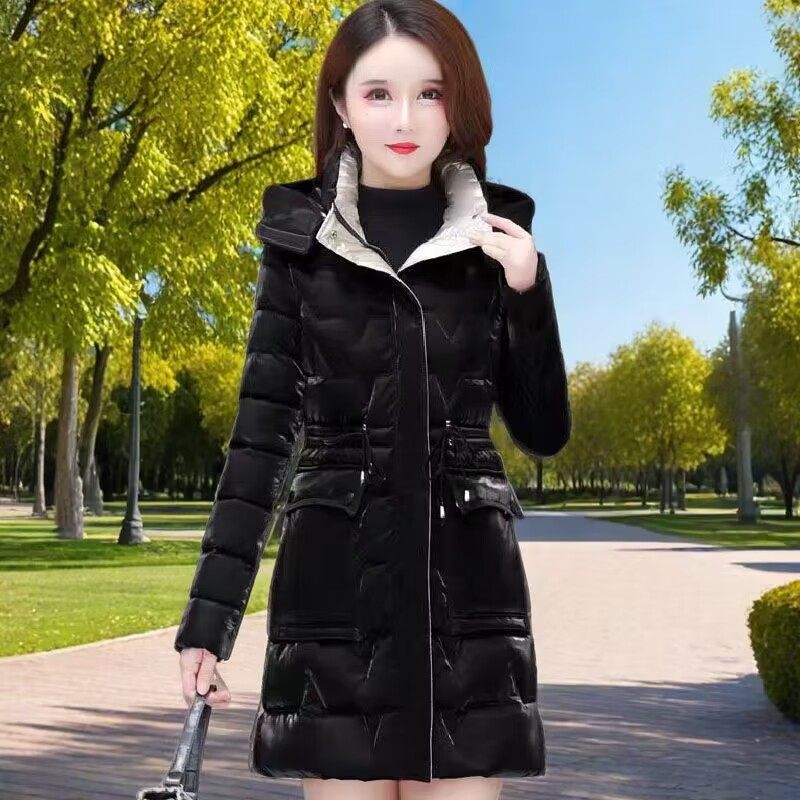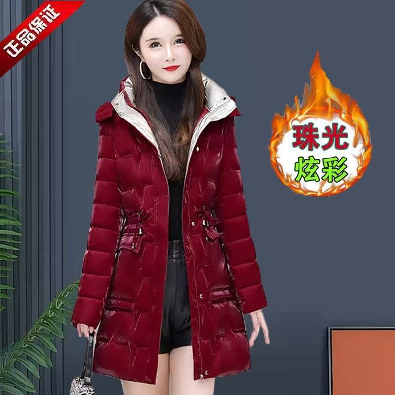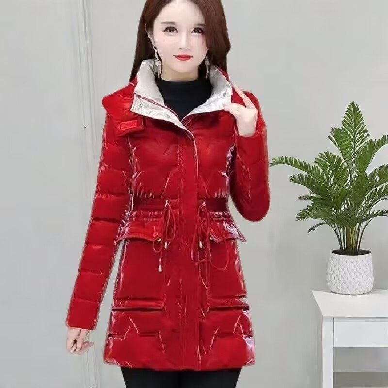 冬季新款棉衣女中长款免洗亮面炫彩韩版羽绒棉服加厚修身洋气棉袄