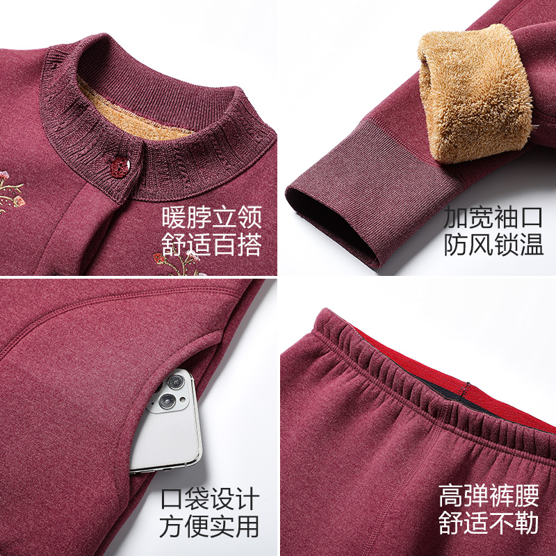 雅鹿开衫套装秋衣秋裤女中老年妈妈加绒加厚护膝奶奶对襟保暖内衣