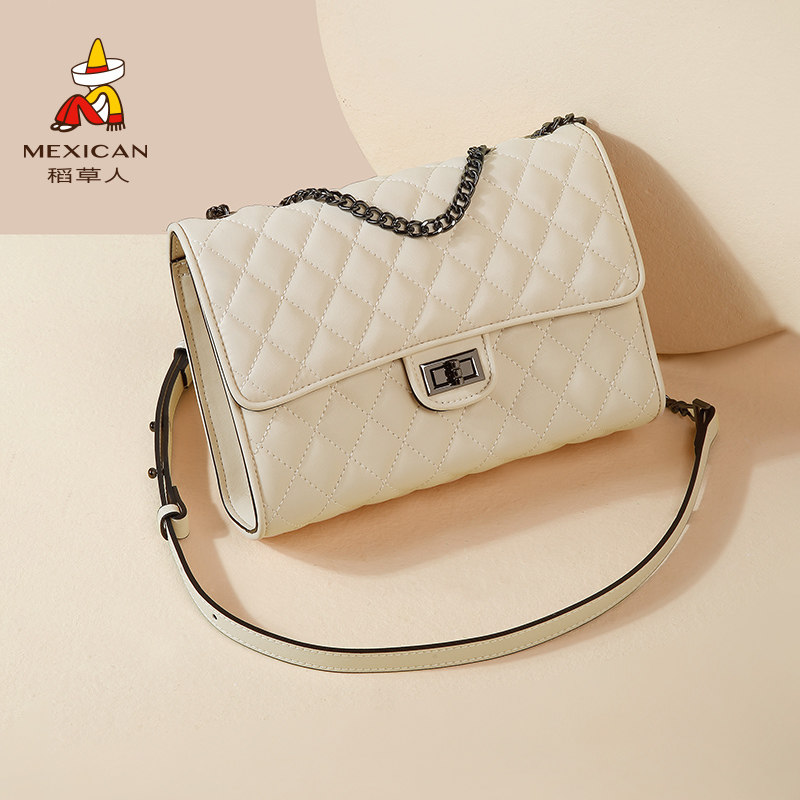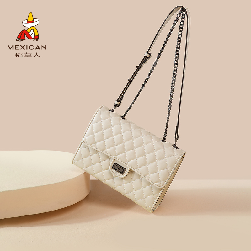 小香风牛皮菱格单肩包
