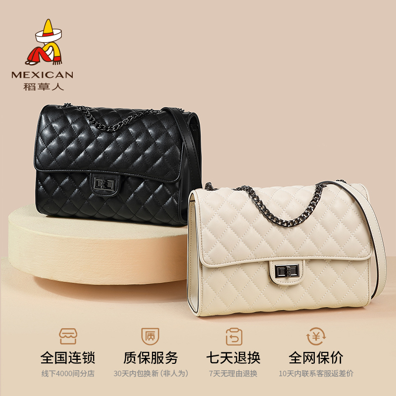稻草人包包女时尚百搭真皮高级感腋下单肩包小香风牛皮链条斜挎包