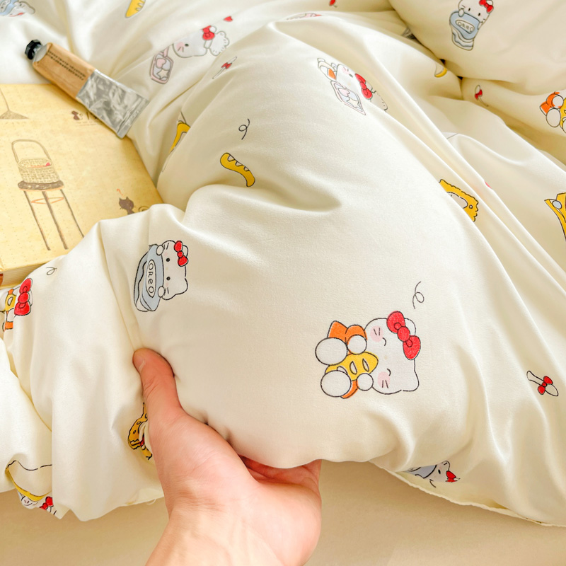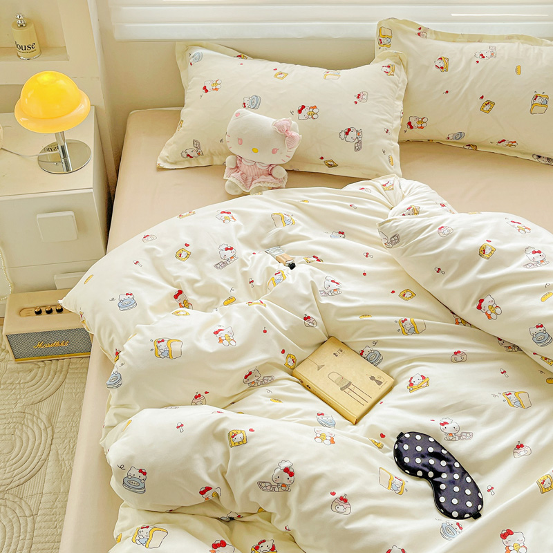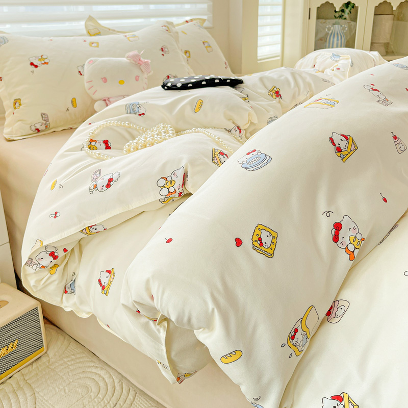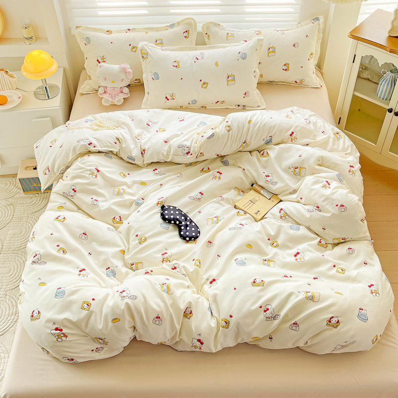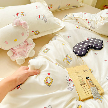 安懒懒 小清新时尚印花水洗磨毛四件套ins风可爱宿舍三件套卡通