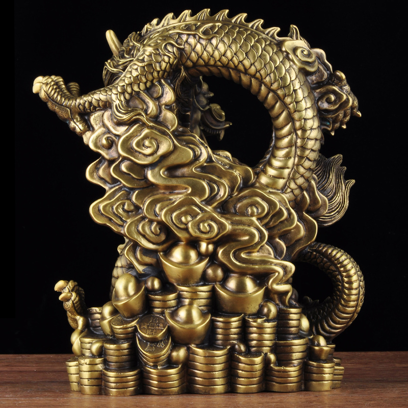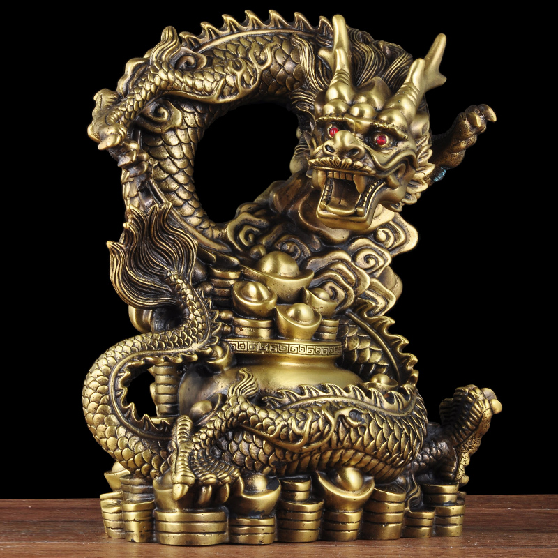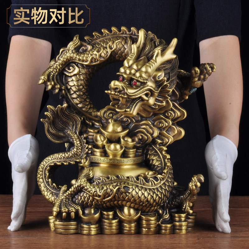 黄铜龙摆件招财生肖龙聚宝盆风水元宝摆设家居客厅装饰开业礼品