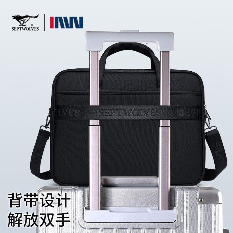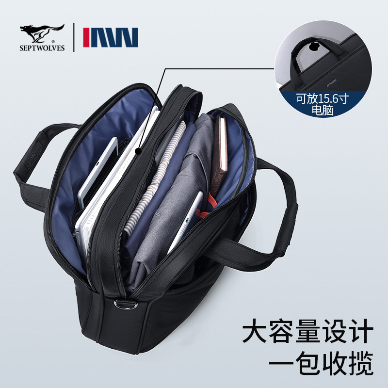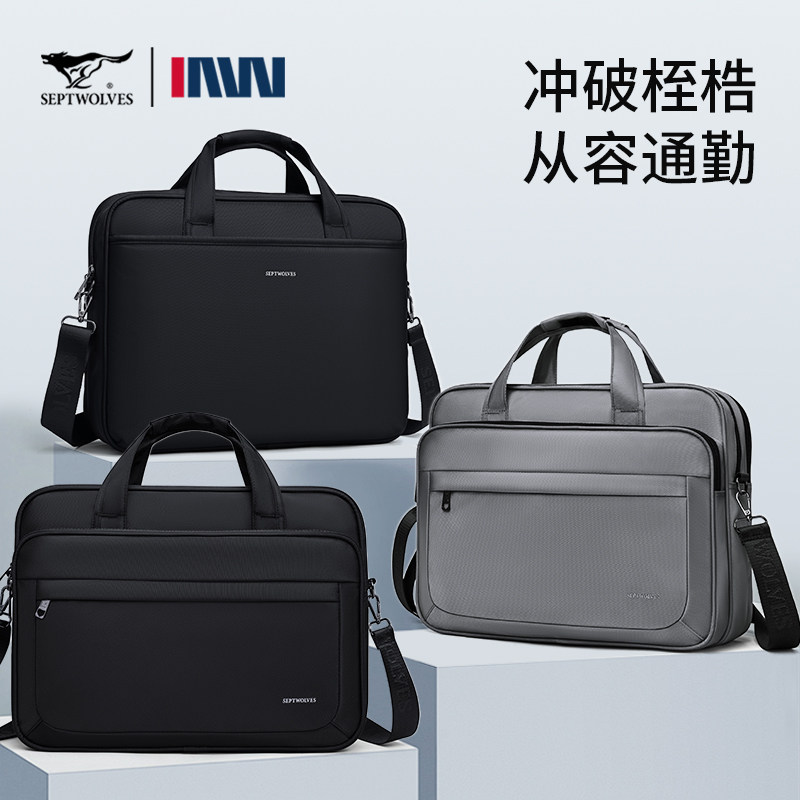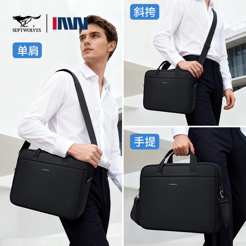 七匹狼男士公文包大容量出差通勤轻便斜挎电脑手提包帆布单肩男包