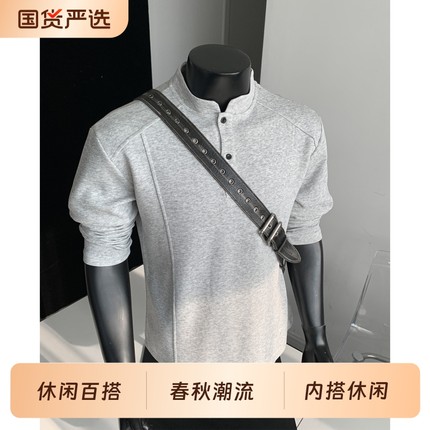 美式Polo亨利衫男长袖t恤春秋潮流cleanfit内搭休闲男装打底卫衣