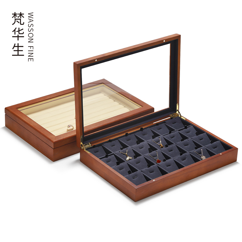 梵华生实木带盖首饰盒高档项链戒指手镯手链收纳盒珠宝展示托盘