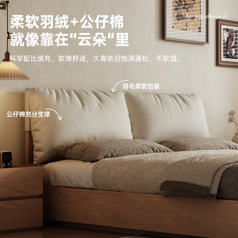 中古风床现代简约带软储物床榻榻米抽屉床小户型主卧高箱收纳床