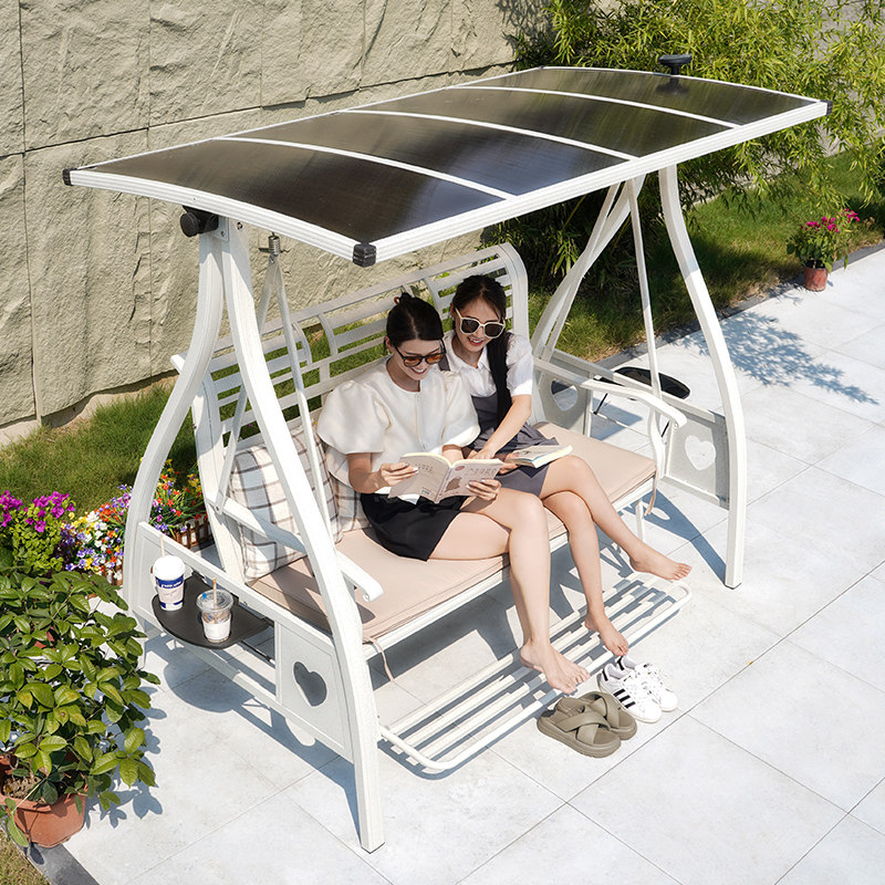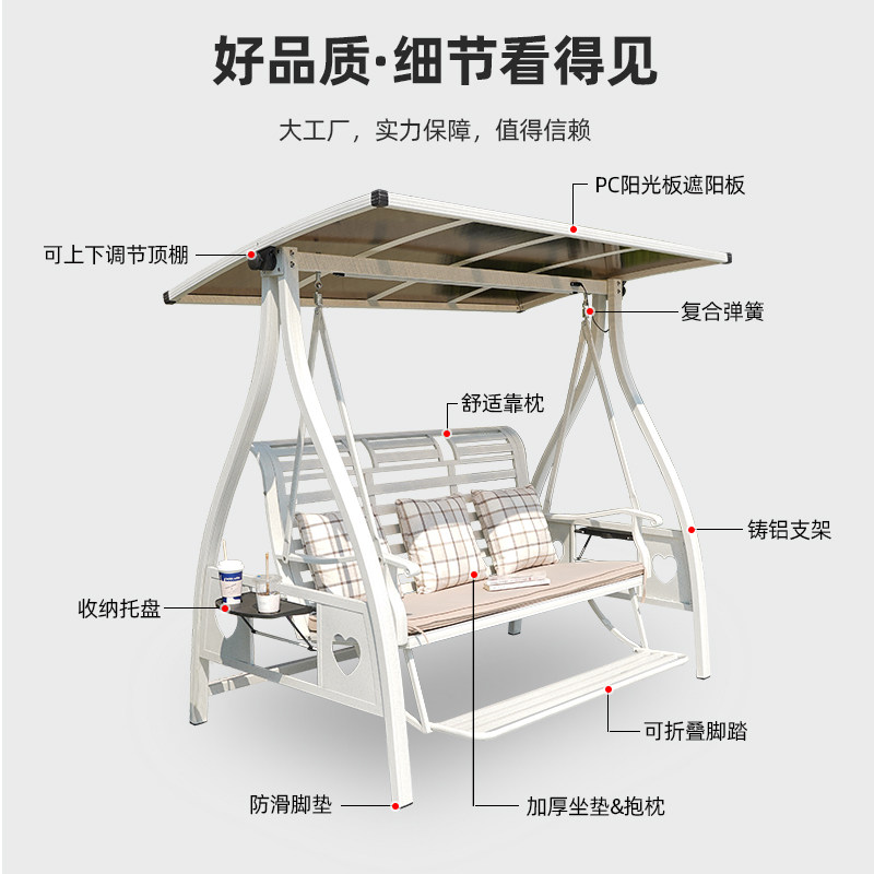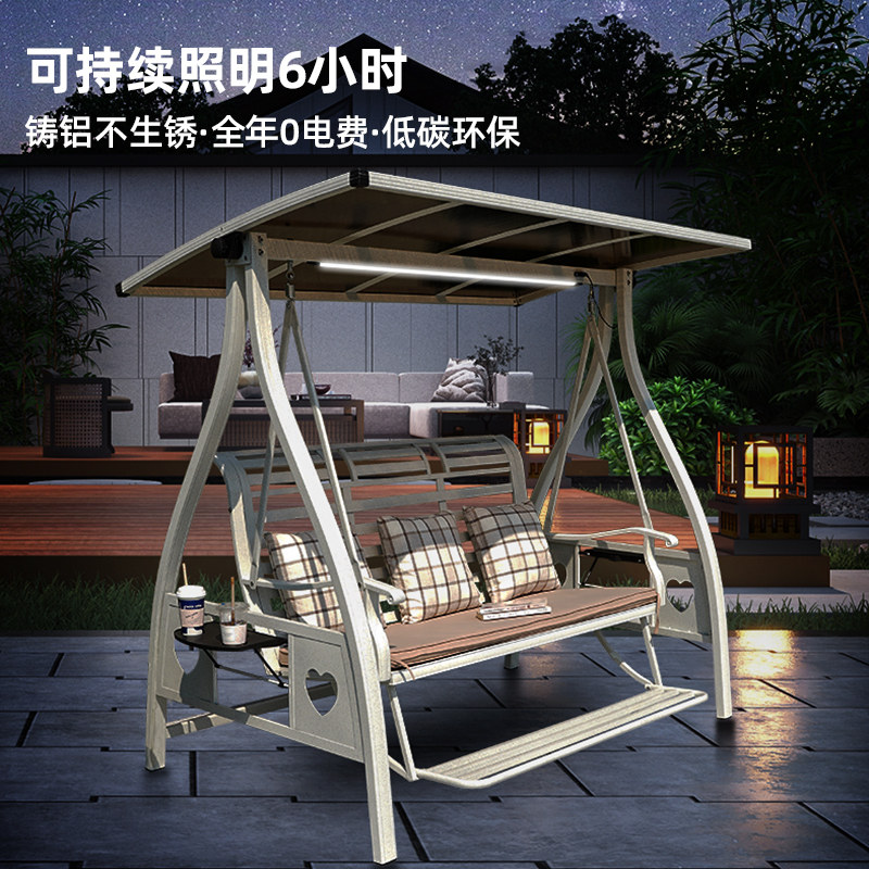 秋千户外庭院室外别墅花园太阳能灯铸铝合金双人摇椅网红秋千躺床