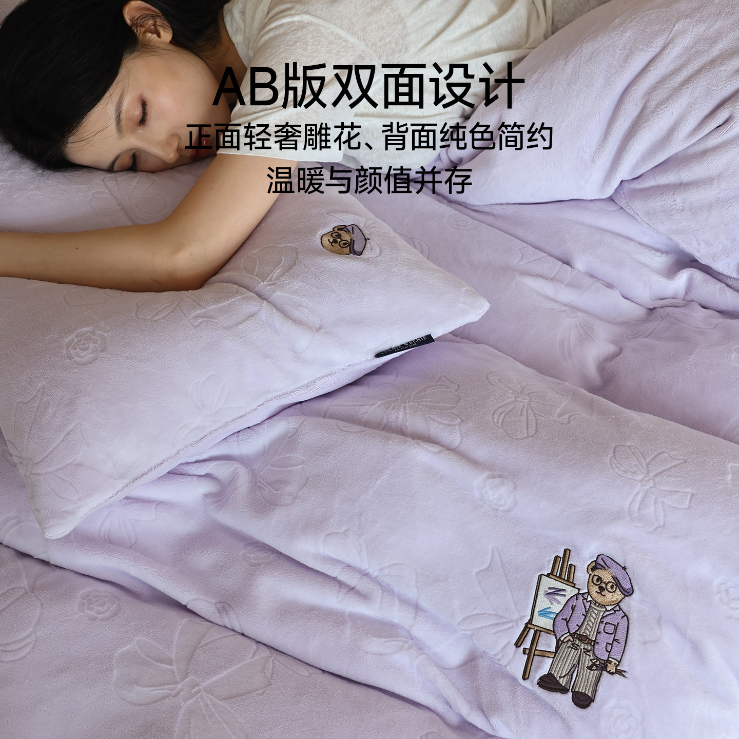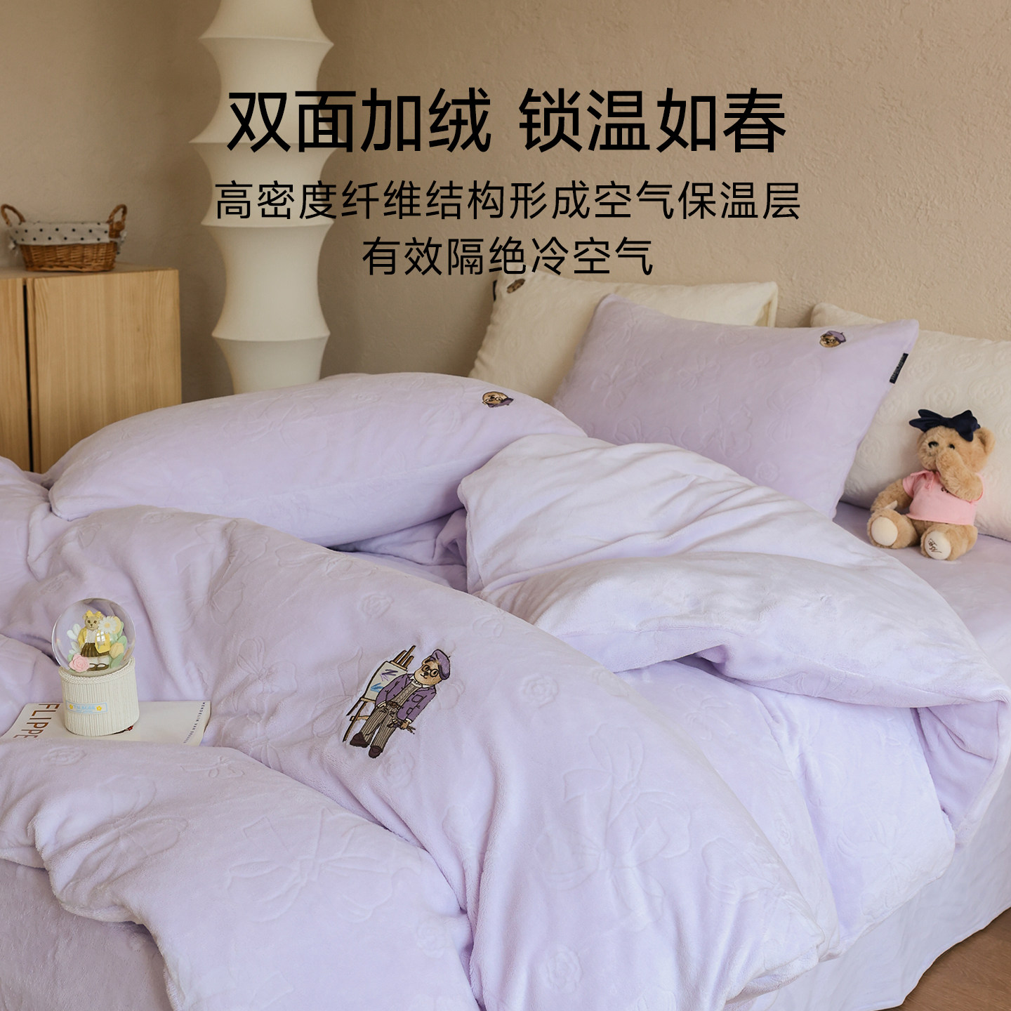 TeenieWeenie紫色秋冬牛奶绒四件套珊瑚绒床上绒冬季加绒法兰绒