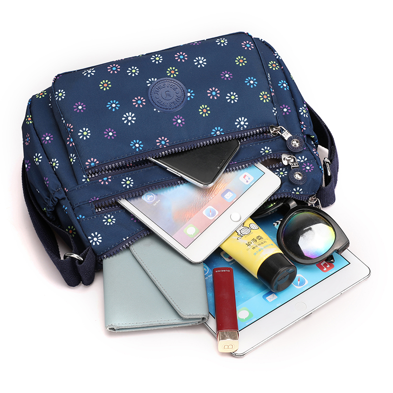 印花多层单肩斜挎包轻便背包牛津布女包帆布包大容量中年妈妈包包