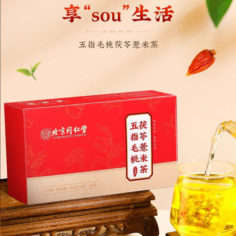 北京同仁堂五指毛桃茯苓薏米茶5g*31袋开水冲泡茶红枣荷叶栀子