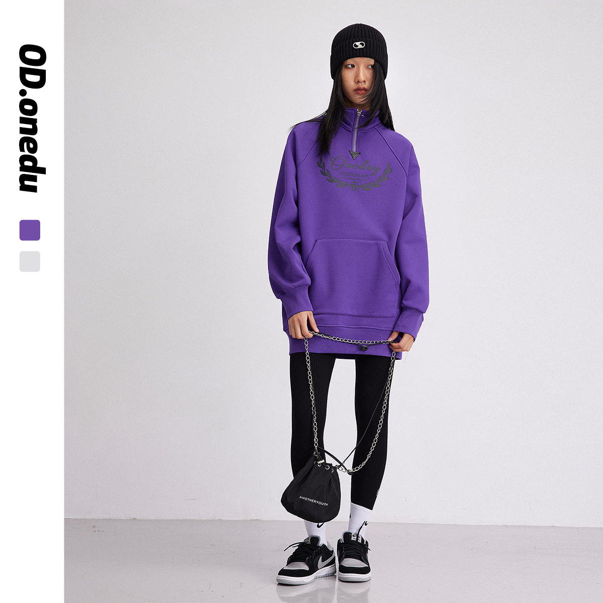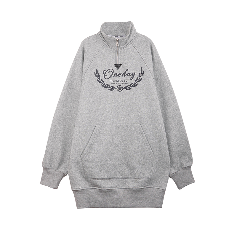 OD立领翻折拉链印花复古卫衣裙女2025新款春秋加绒宽松百搭连衣裙