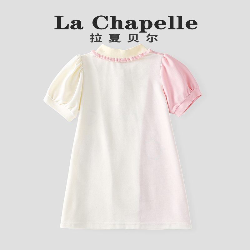 拉夏贝尔女童连衣裙夏季2025新款儿童薄款拼接裙子洋气时髦公主裙