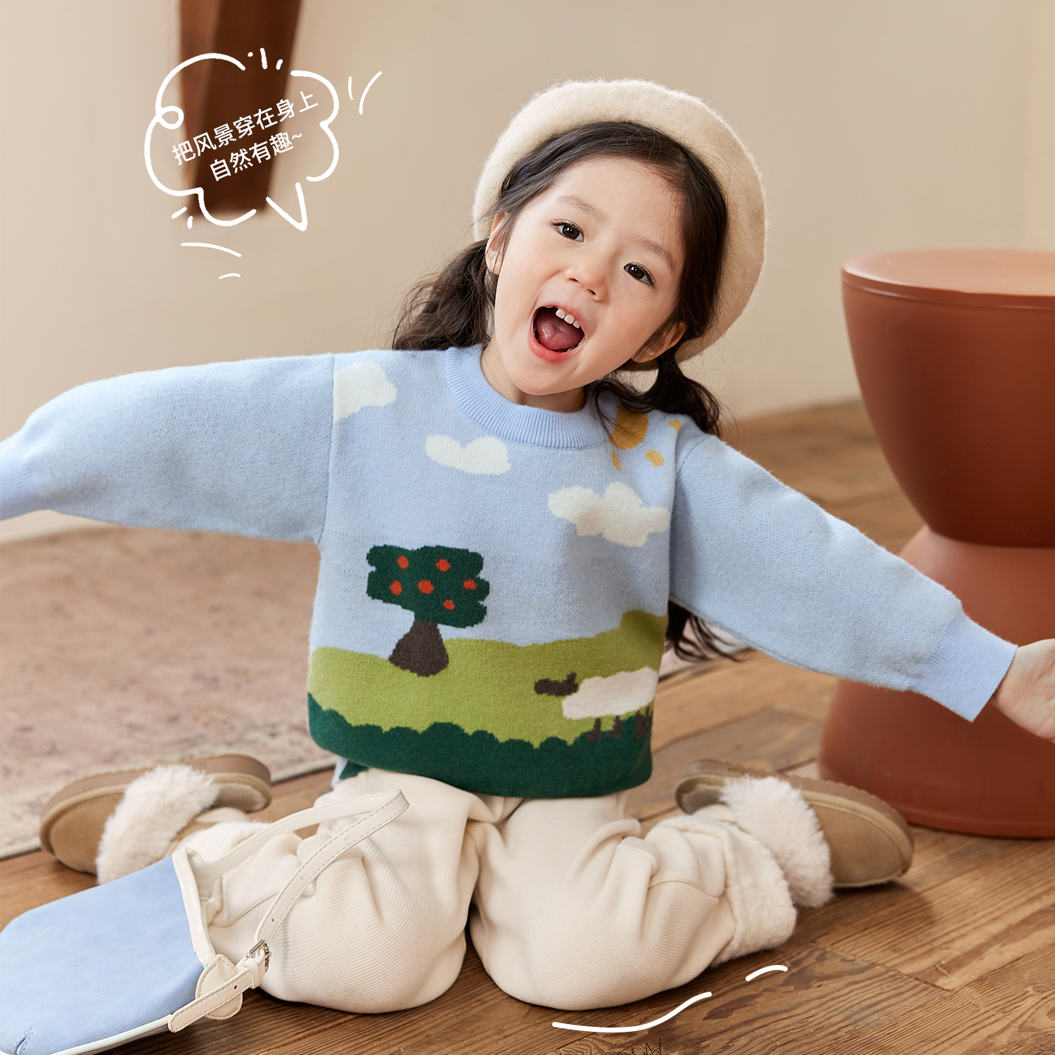 小O宝Okids童装宝宝图案毛衣女套头洋气2025秋冬陈大猪婴儿针织衫