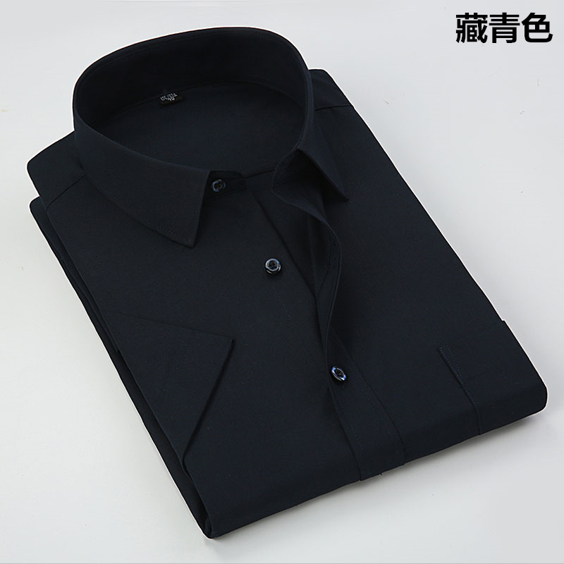 啄木鸟男装特大码衬衫男式短袖衬衫男士衬衣纯黑色加大衬衫有大号