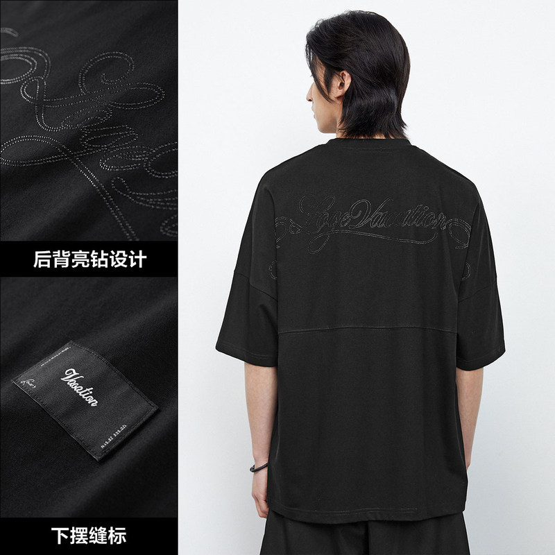 【凉感】太平鸟男装凉感面料烫钻字母短袖t恤男B1DAD2219