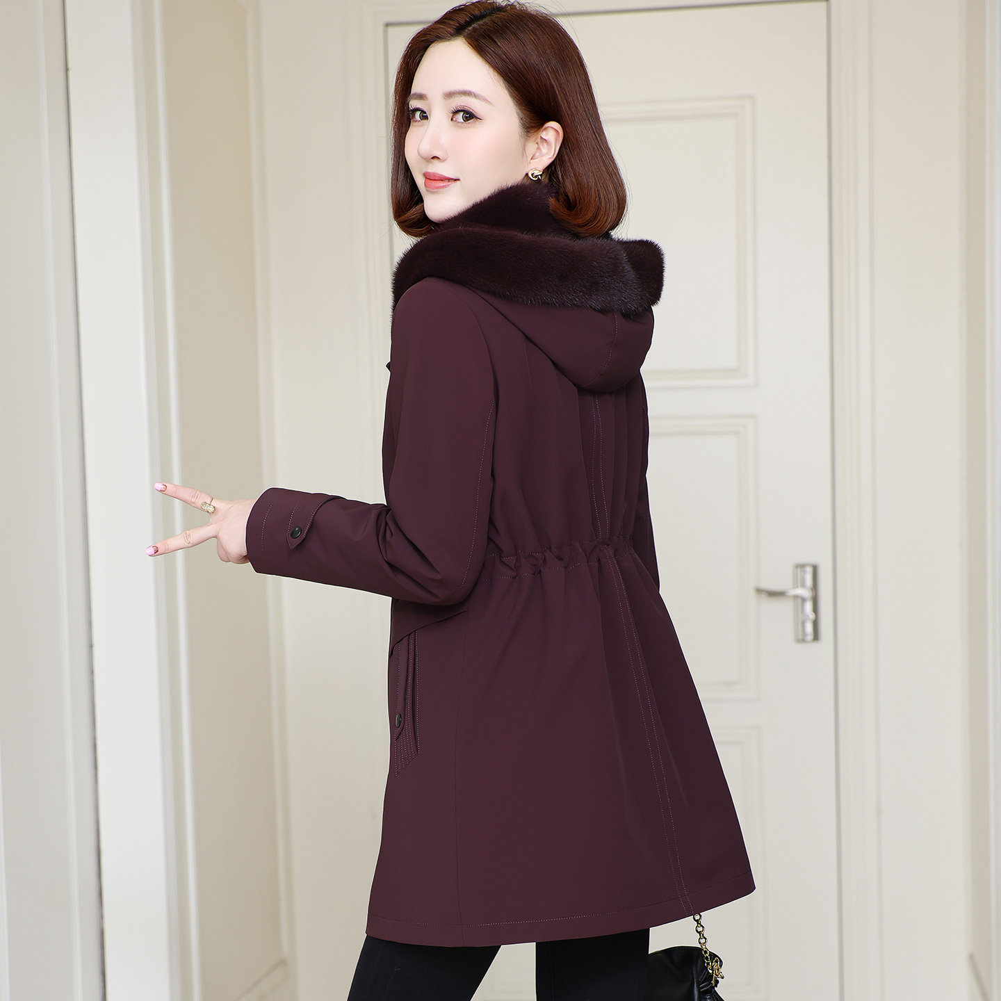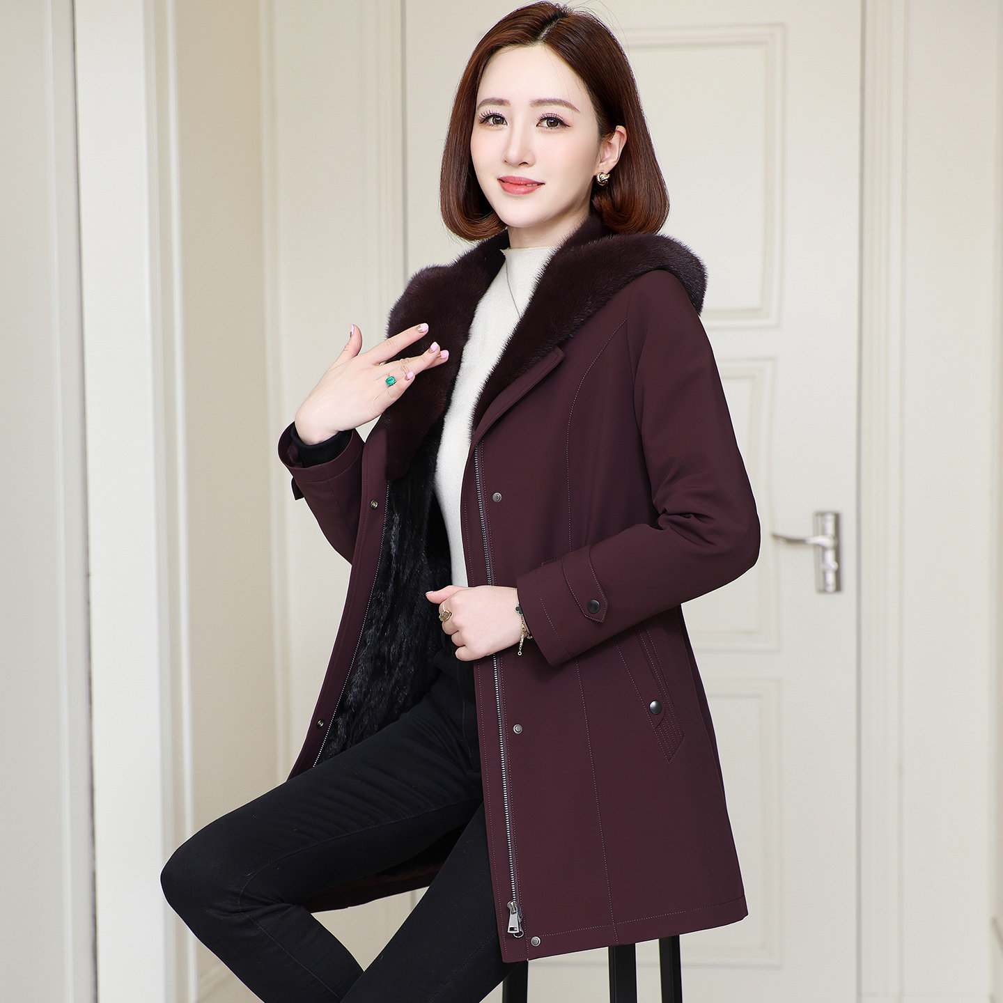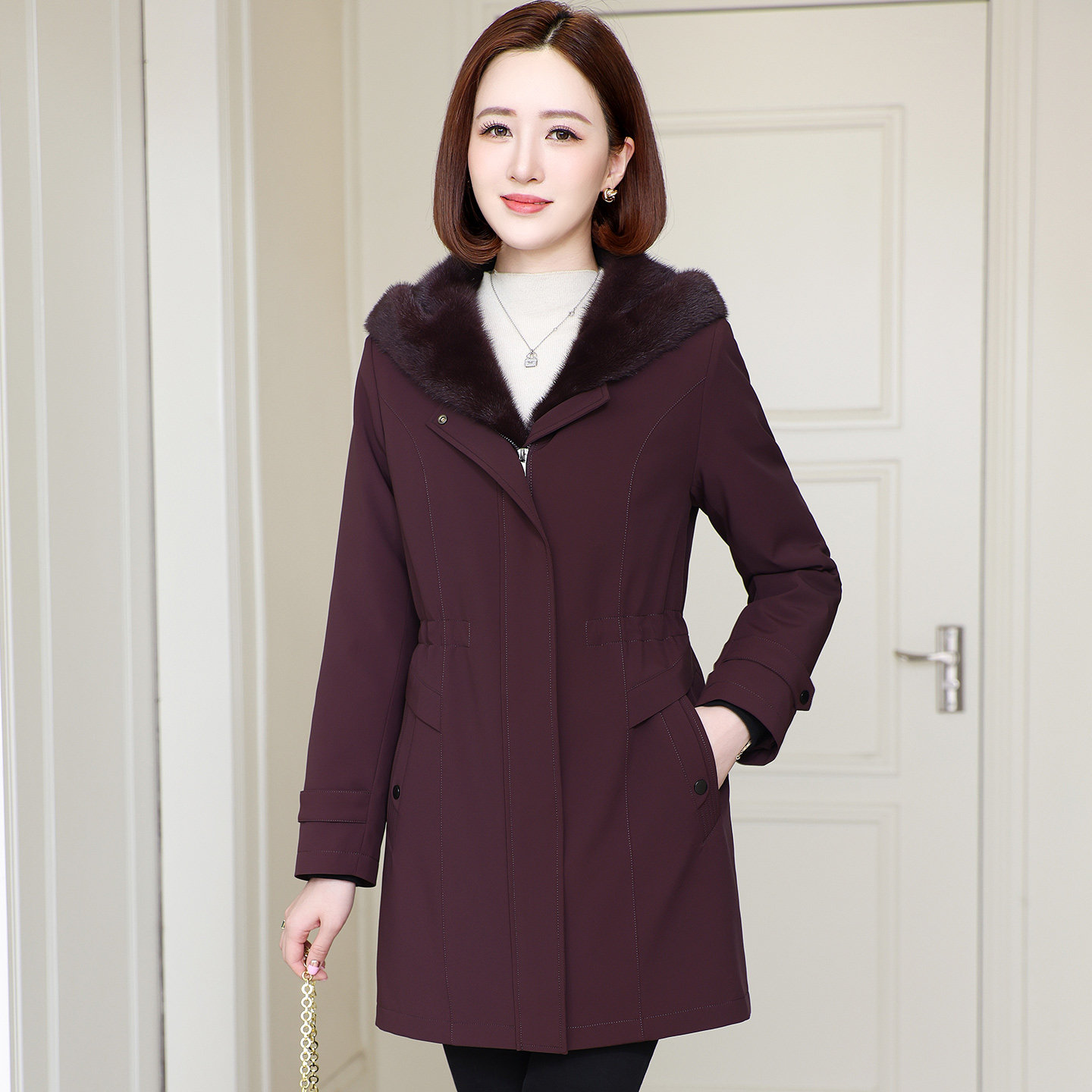 派克服女2025海宁新款冬水貂内胆可拆卸妈妈尼克服皮草外套中长款