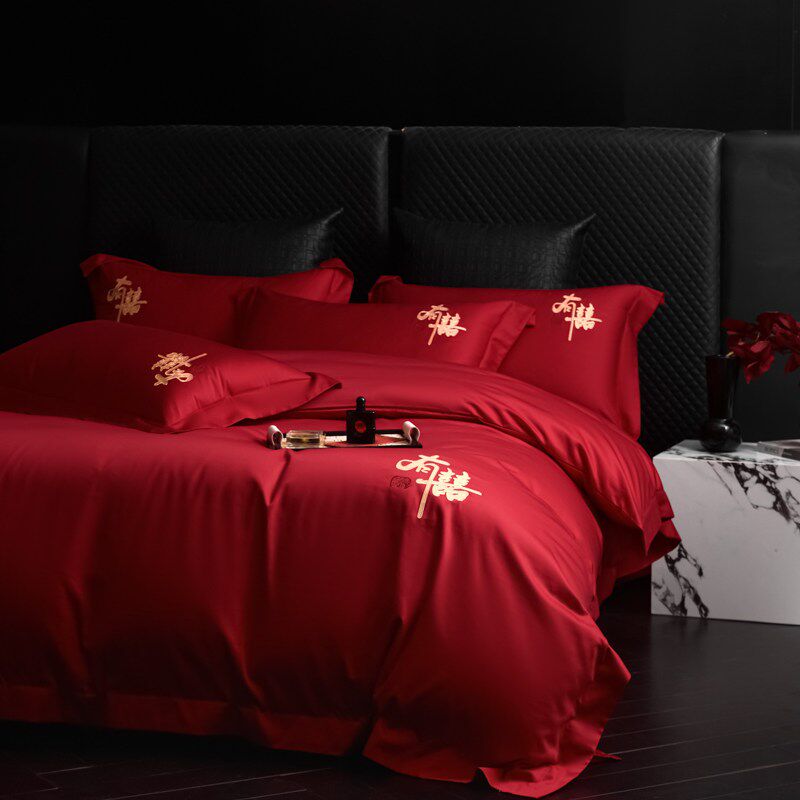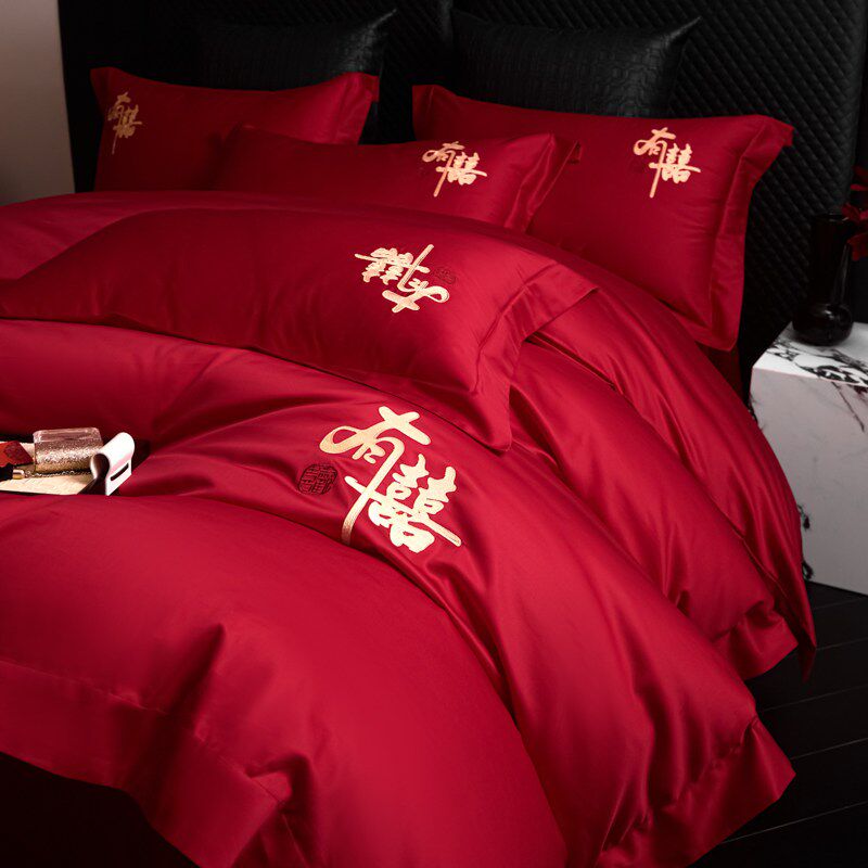 高端红色结婚四件套婚庆陪嫁喜字被套新婚礼床单婚房喜被床上用品