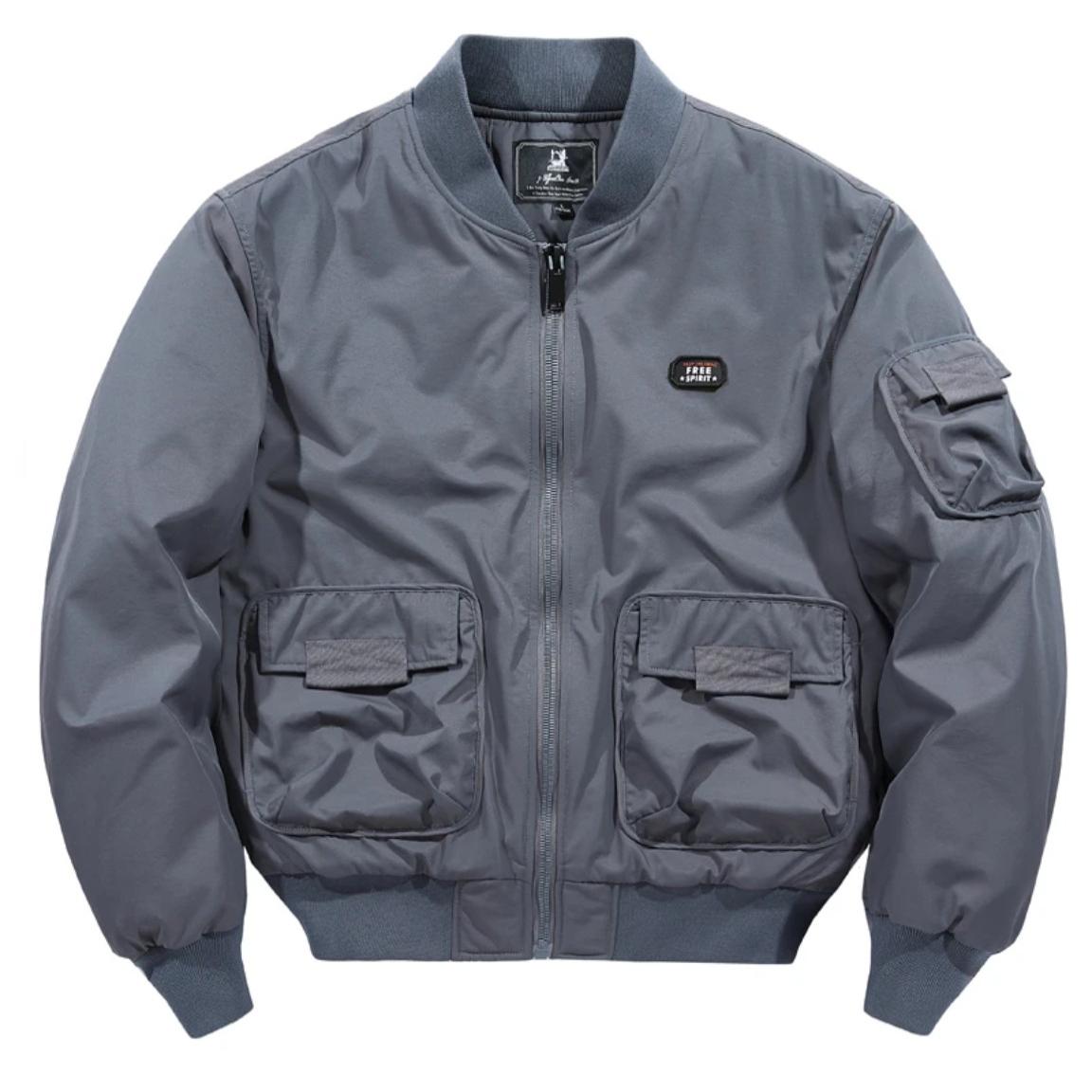 冬季夹克男加棉加厚多口袋工装春秋季防风棒球服外套男宽松休闲