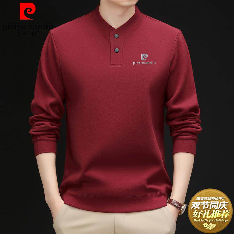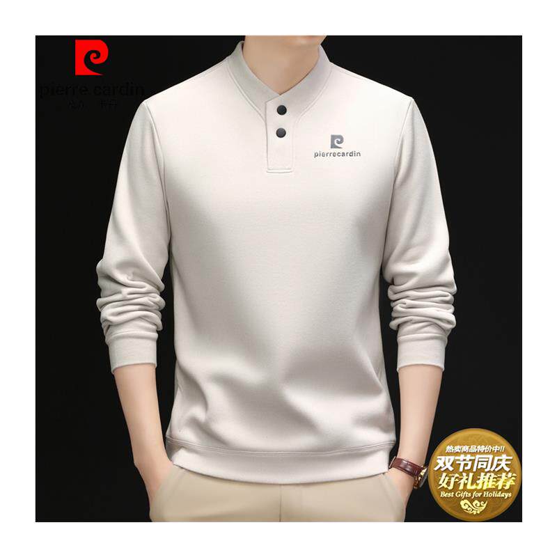 皮尔卡丹秋冬新款双面德绒卫衣男士加绒保暖半高领长袖T恤打底衫
