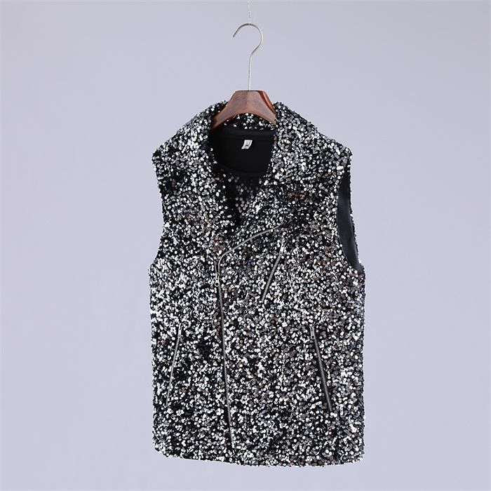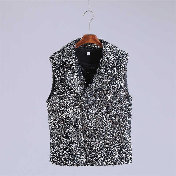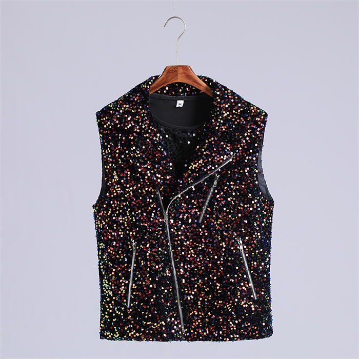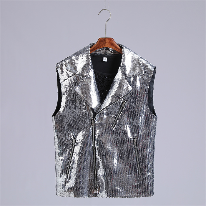 夏季薄款男士机车亮片马甲演出服舞台表演服男歌手夏季潮亮片背心