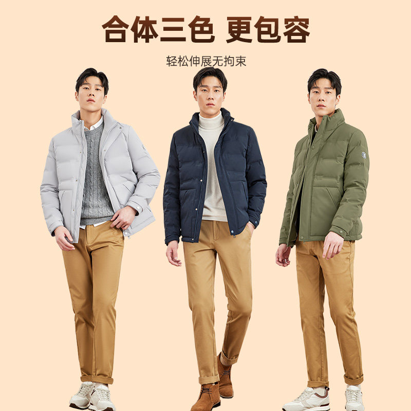 七匹狼鹅绒羽绒服男士三防新款冬季立领短款夹克外套加厚上衣男装
