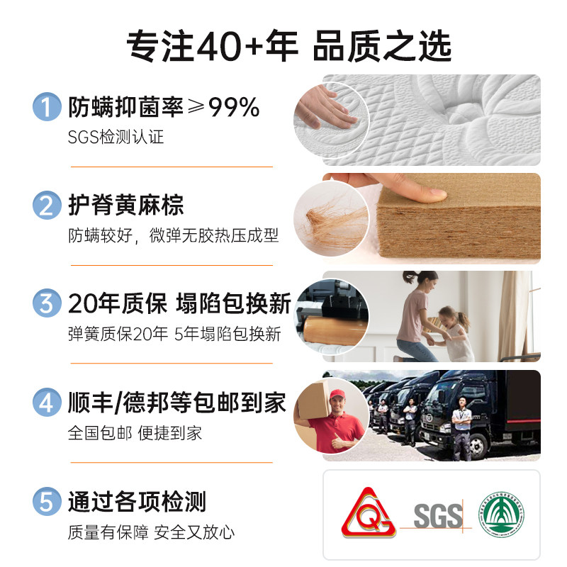 希尔顿酒店专用天然乳胶床垫双人独立弹簧床垫家用席梦思软垫1.5/