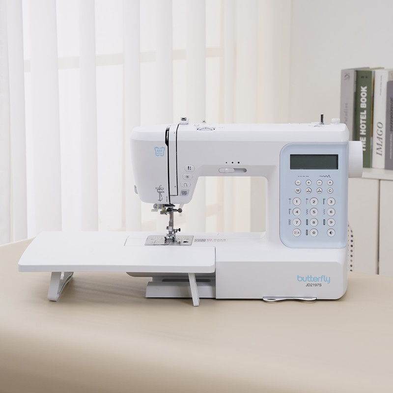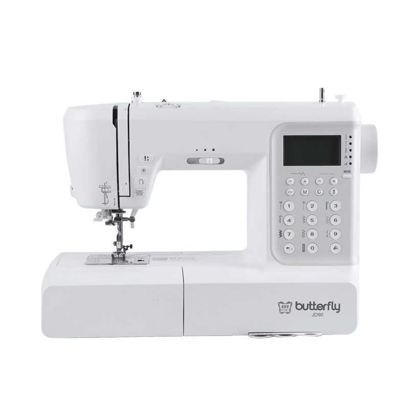 蝴蝶牌新款JD90/60家用缝纫机404花型电子自动多功能电动锁边衣车