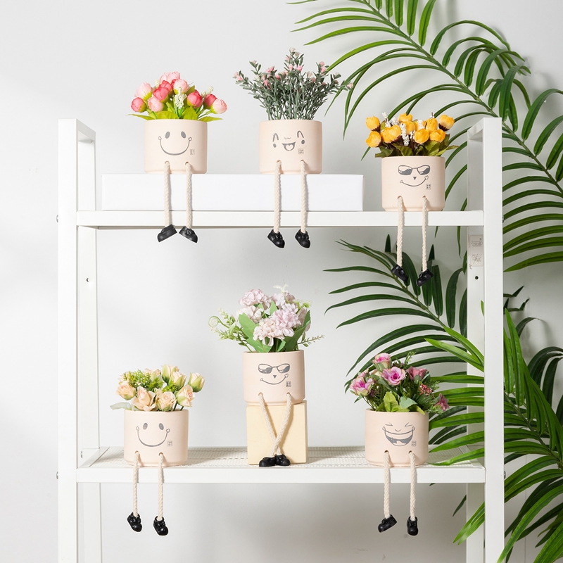 ins吊脚娃娃插花仿真花绿植盆栽客厅桌面装饰小摆件创意家居饰品