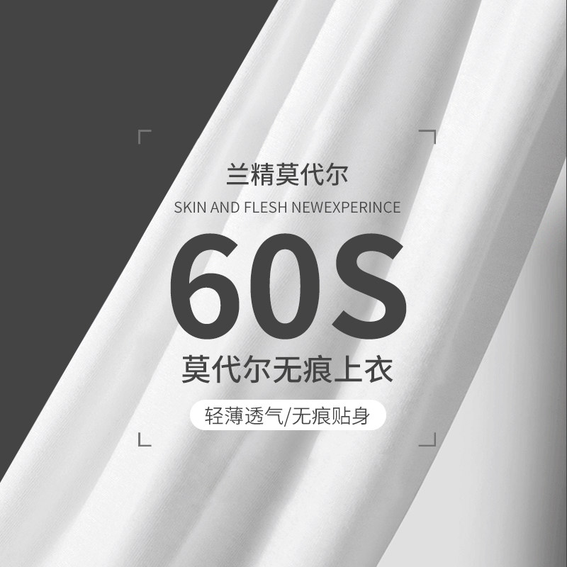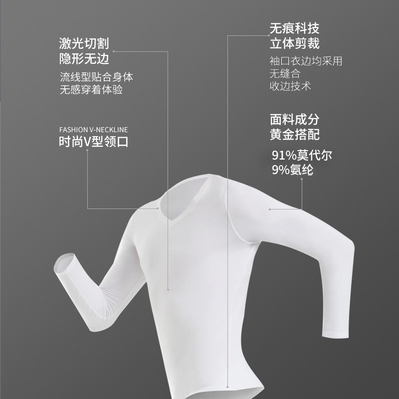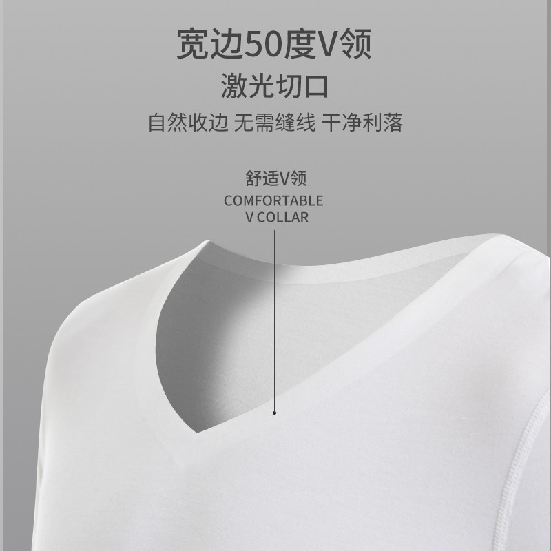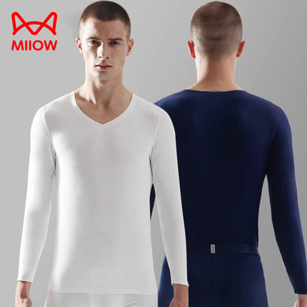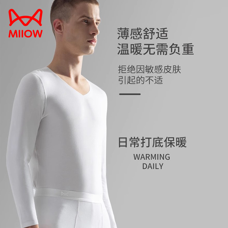 猫人莫代尔秋衣男内穿薄款V领上衣打底保暖衣无痕男士内衣白色