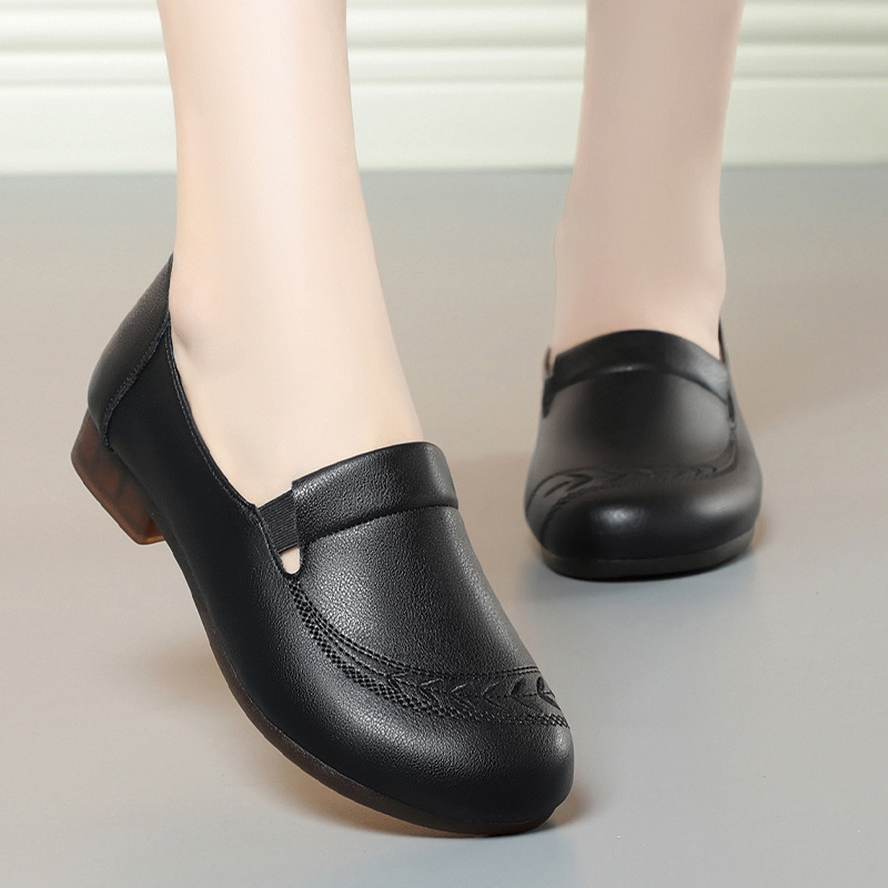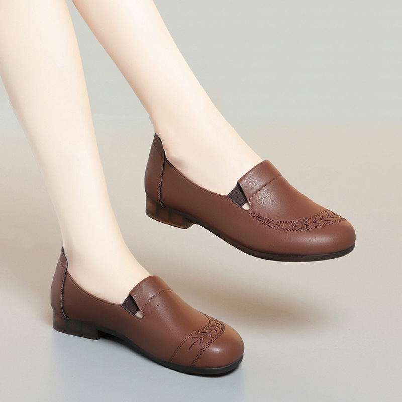 妈妈鞋春秋软皮软底女单鞋中老年女鞋百搭舒适老人软圆头皮鞋