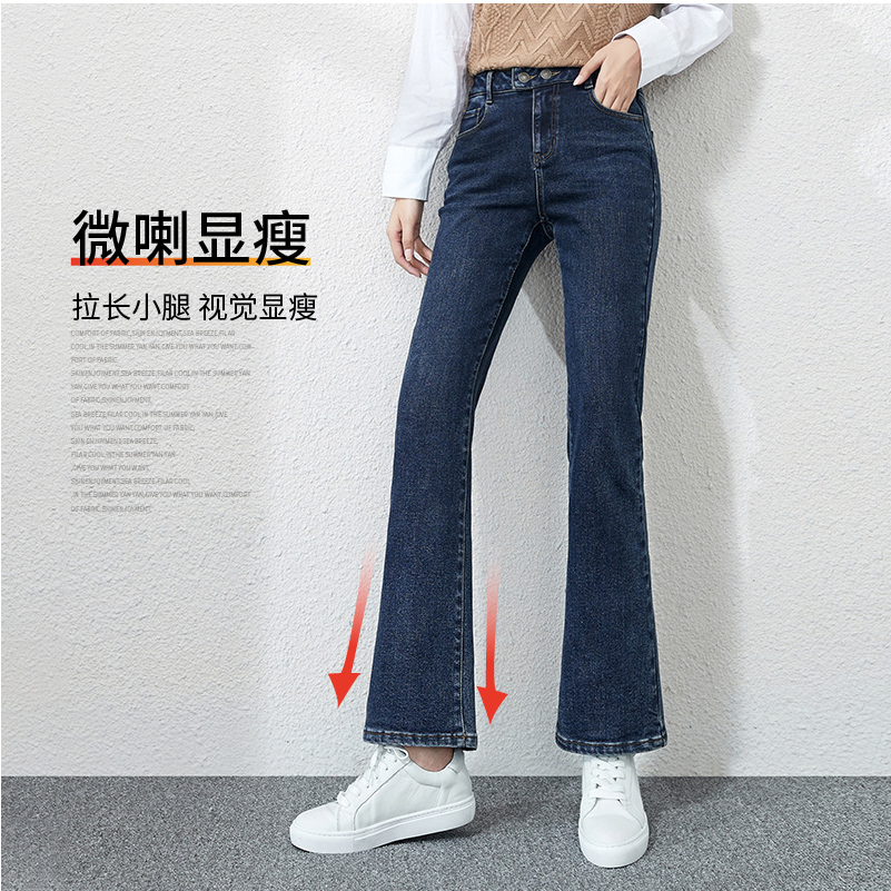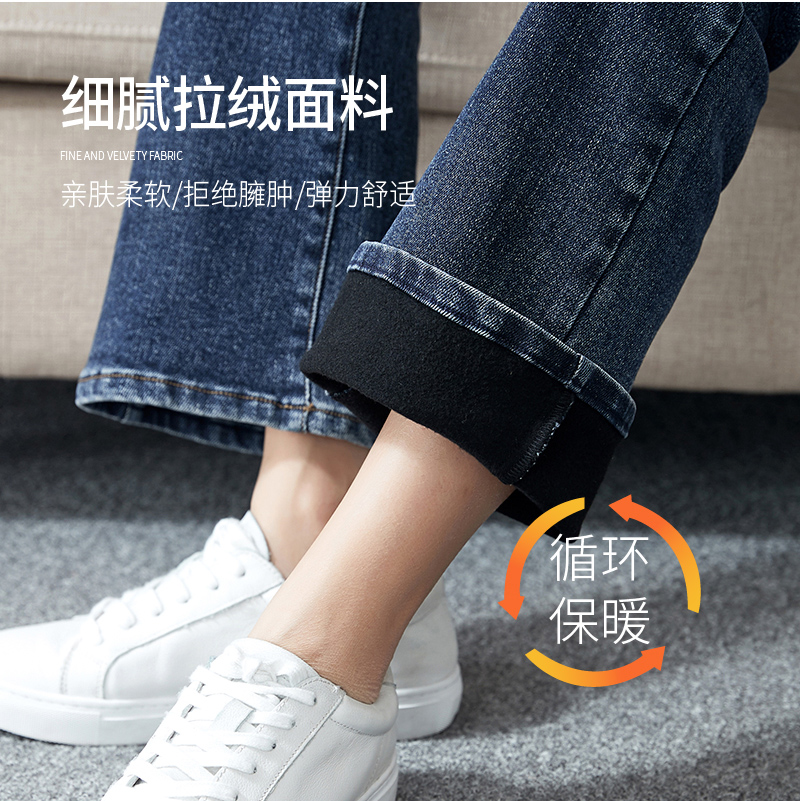 逸阳微喇牛仔裤女加绒加厚2025冬季新款高腰显瘦修身直筒喇叭长裤