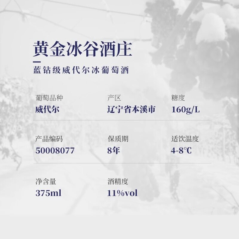 张裕葡萄酒黄金冰谷蓝钻冰酒375ml单支礼盒装威代尔葡萄冰酒酒庄