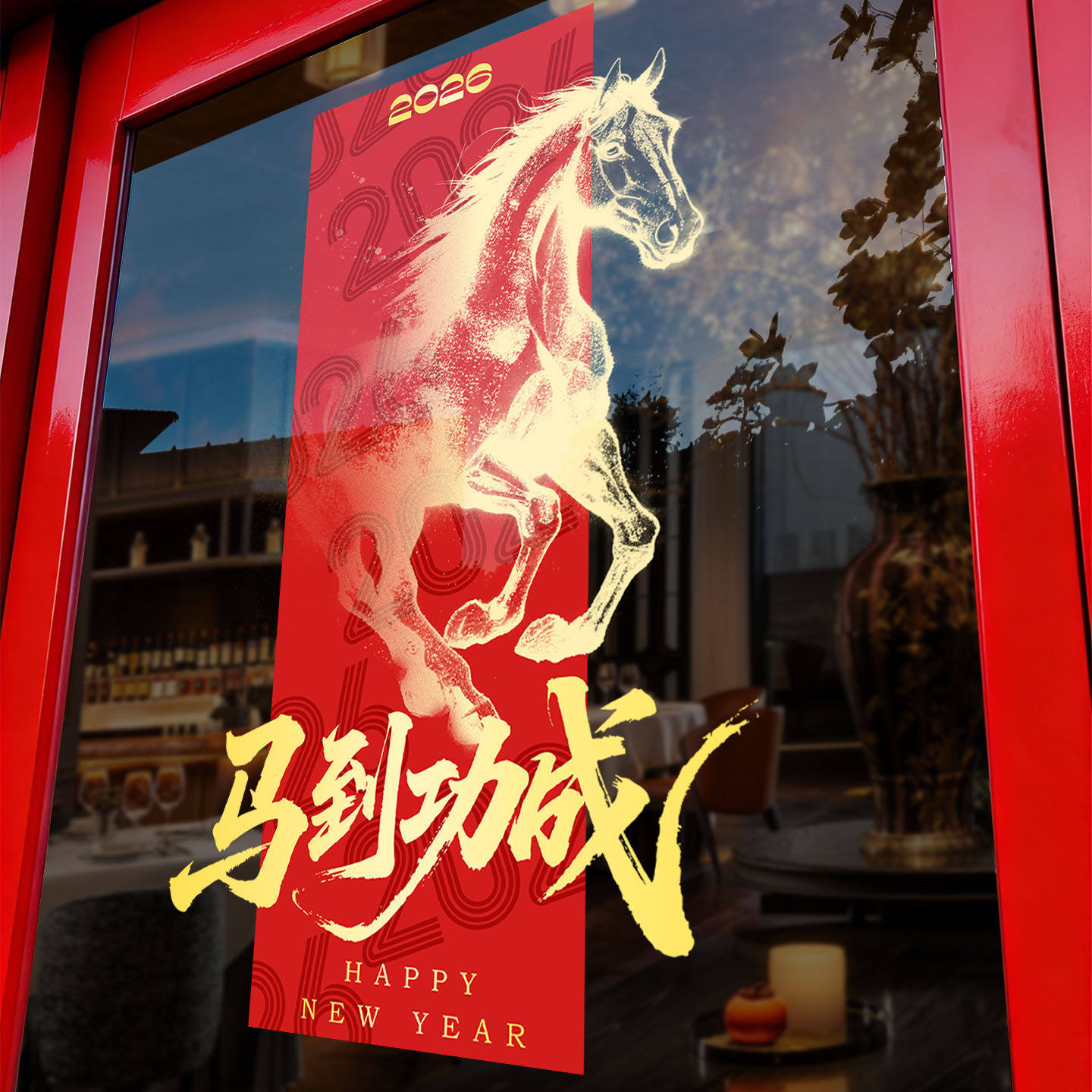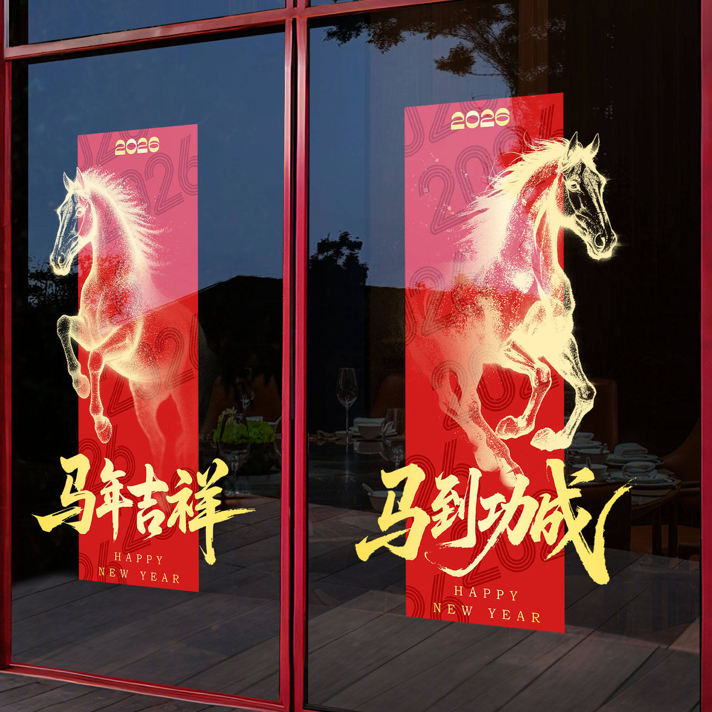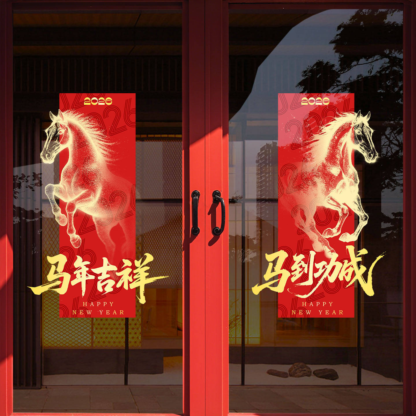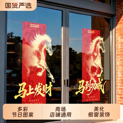 新年装饰贴纸2026马年春节窗花马到成功海报玻璃氛围贴画静电布置