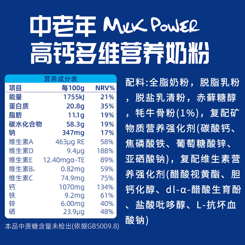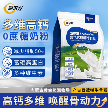 阿尔发中老年高钙多维营养奶粉0蔗糖富硒高蛋白牛奶粉冲饮品
