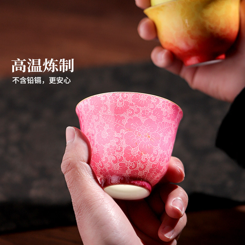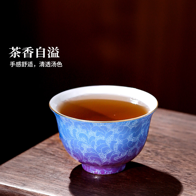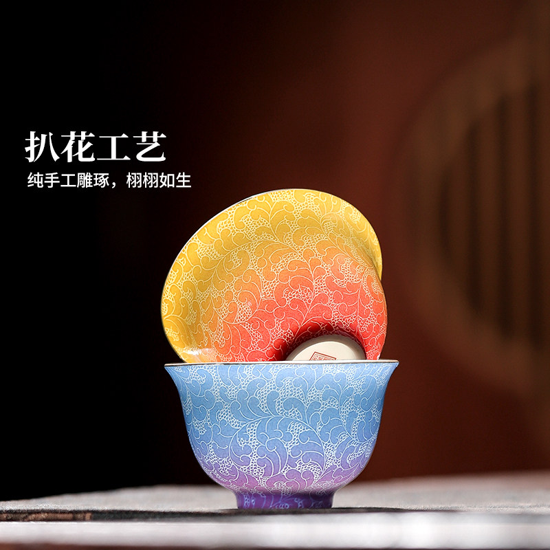 景德镇官方陶瓷茶杯双色扒花主人杯品茗杯个人专用高档礼盒装送礼