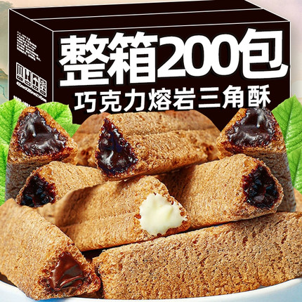 熔岩三角酥100支整箱巧克力夹心膨化小饼干小孩孕妇学生解馋零食