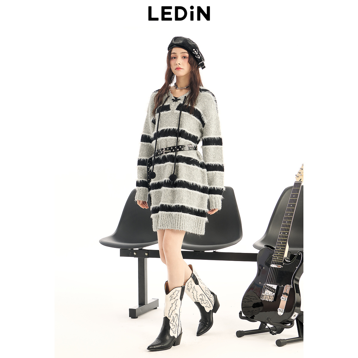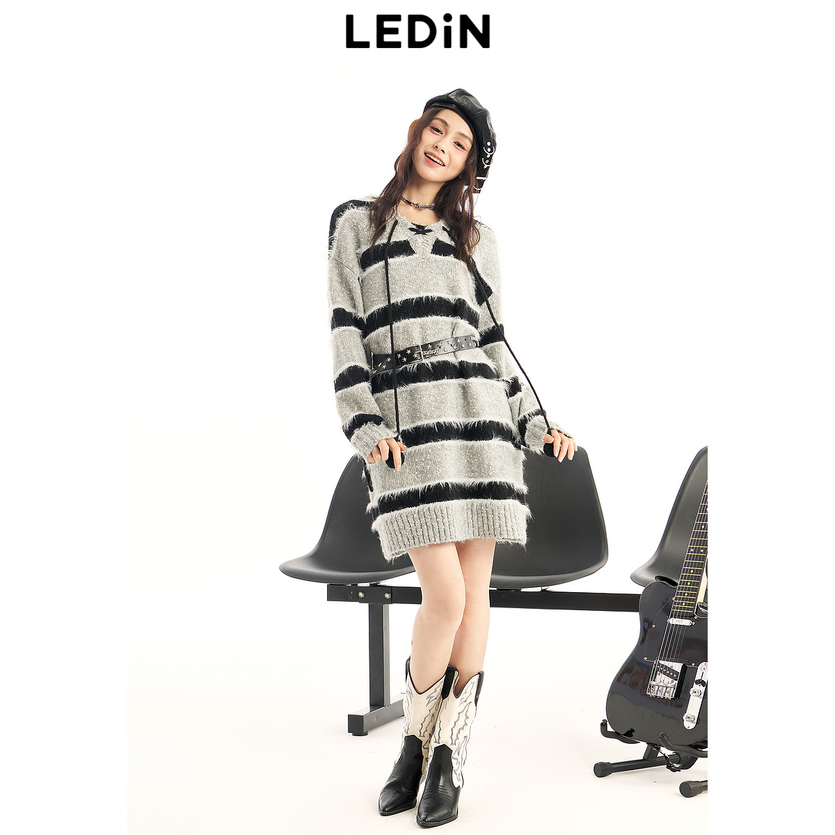 【清仓】乐町朋克条纹撞色连衣裙秋冬长裙C2FAD4E