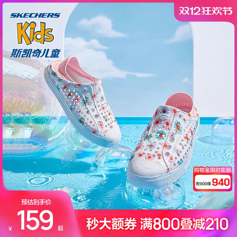 斯凯奇outlets儿童洞洞鞋女童沙滩鞋女孩包头凉鞋夏款大小童拖鞋