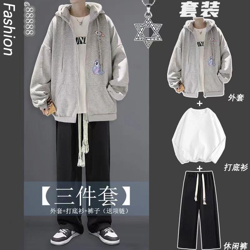 【四件套】开衫卫衣男春秋宽松港风连帽外套潮流ins学生百搭套装