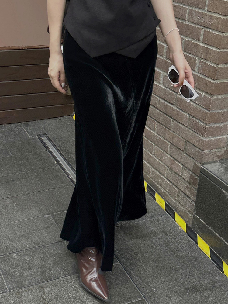 金丝绒高端优雅鱼尾长款半身裙女