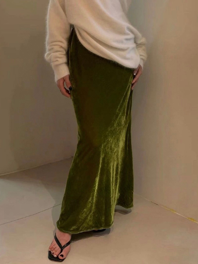 金丝绒鱼尾裙修身显瘦包臀2025秋装新款高端优雅气质长款半身裙女