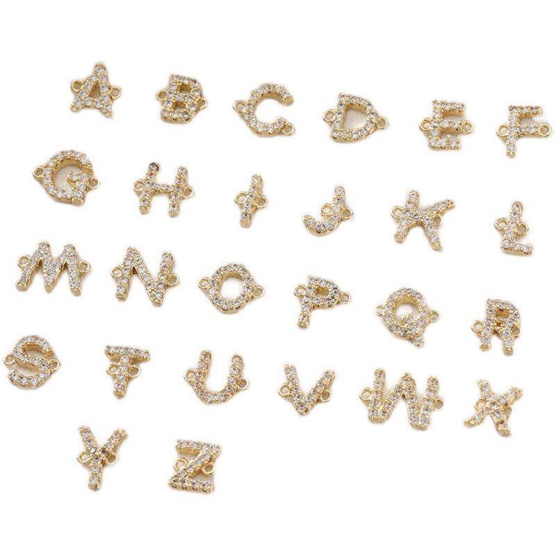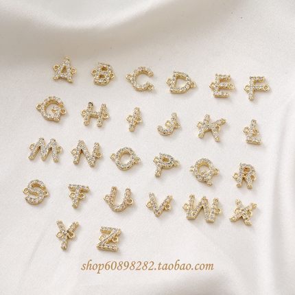 14K包金双吊字母铜镶锆石水晶diy手链项链手作材料配件
