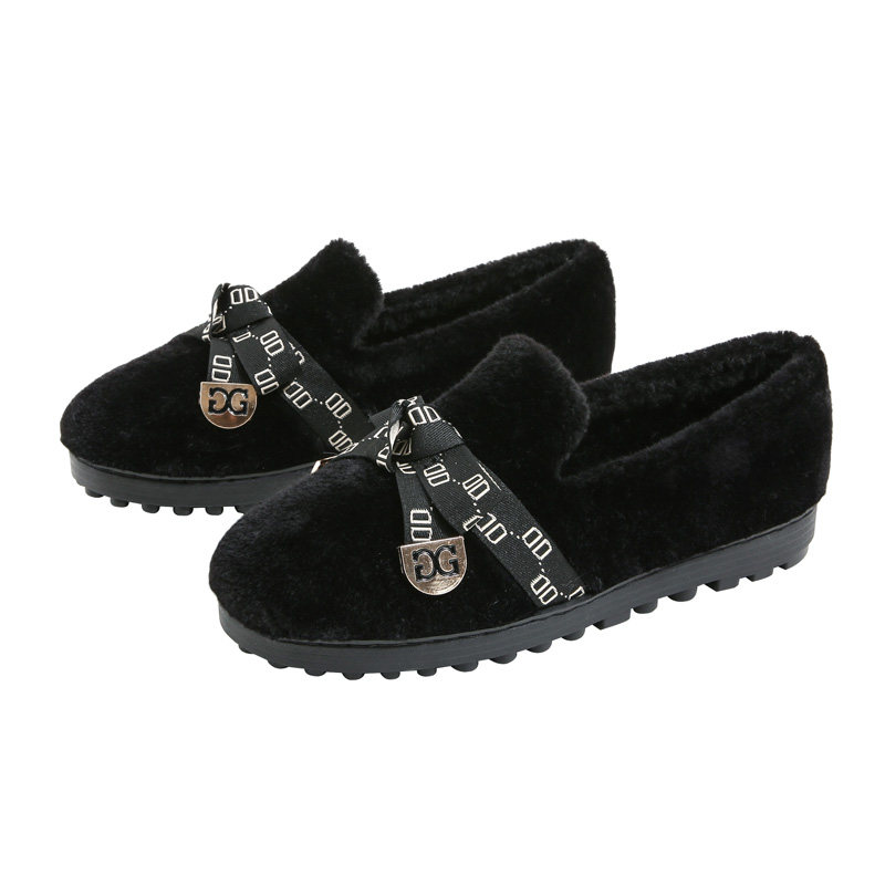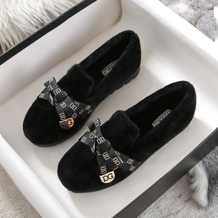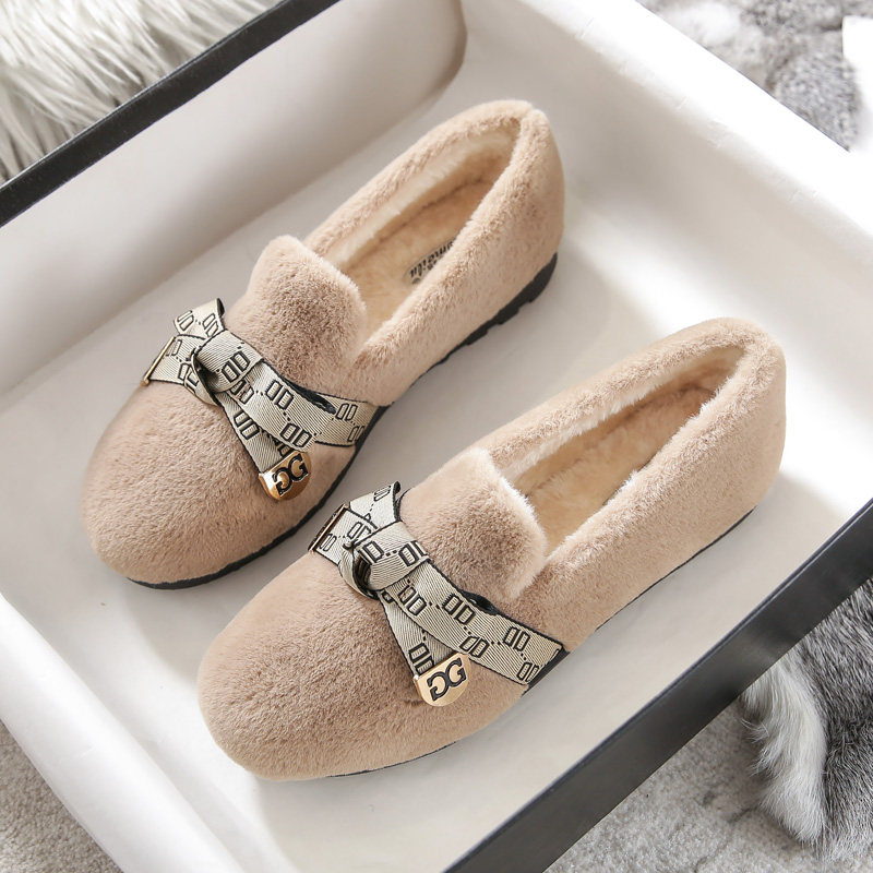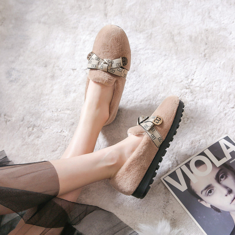 毛毛鞋女秋冬外穿2025新款厚底兔毛豆豆鞋女加绒棉瓢鞋小码33 34
