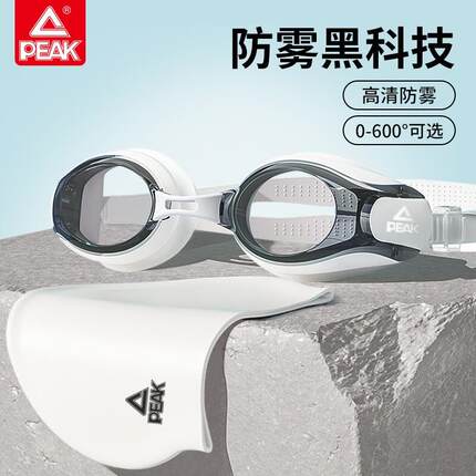 匹克近视泳镜高清防水防雾游泳眼镜泳镜女专业带度数泳帽泳镜套装