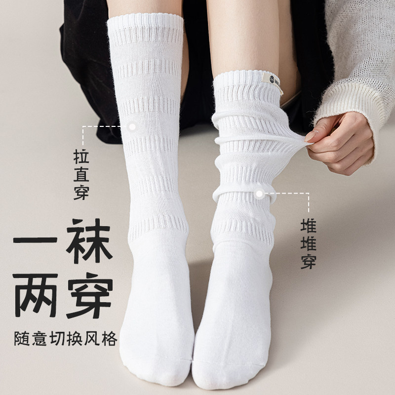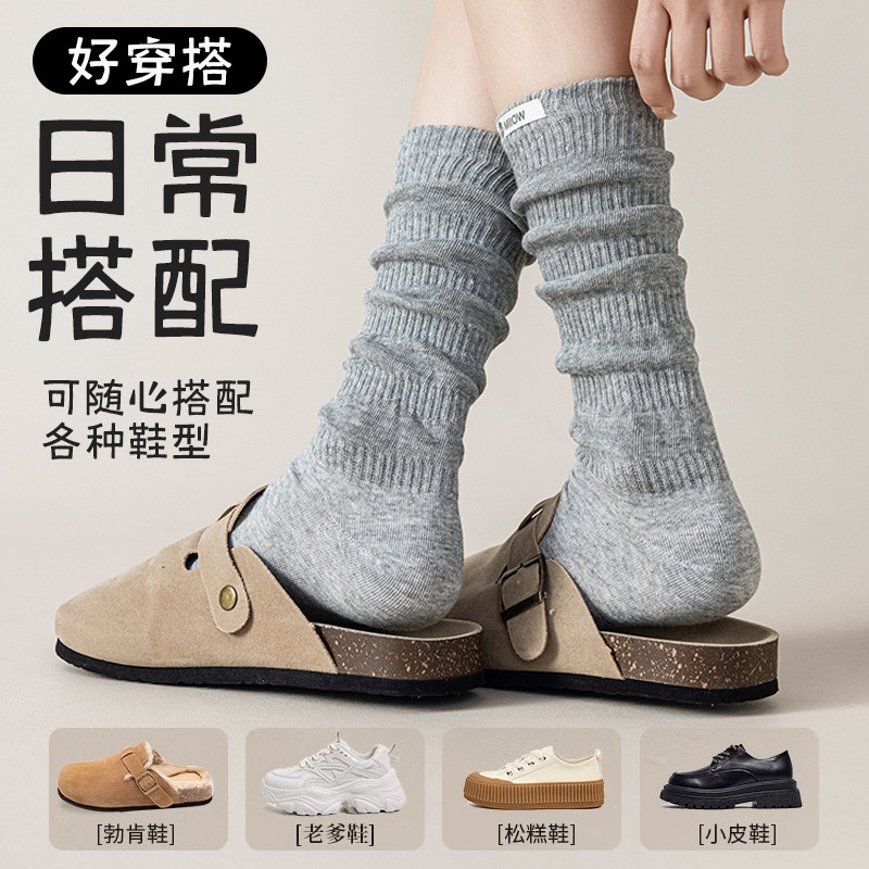 猫人堆堆袜女士袜子纯棉抗起球10A抗菌中筒袜无骨可堆可直长筒袜